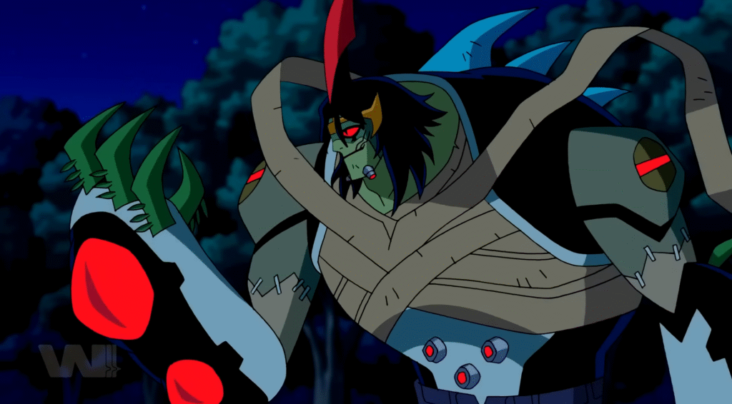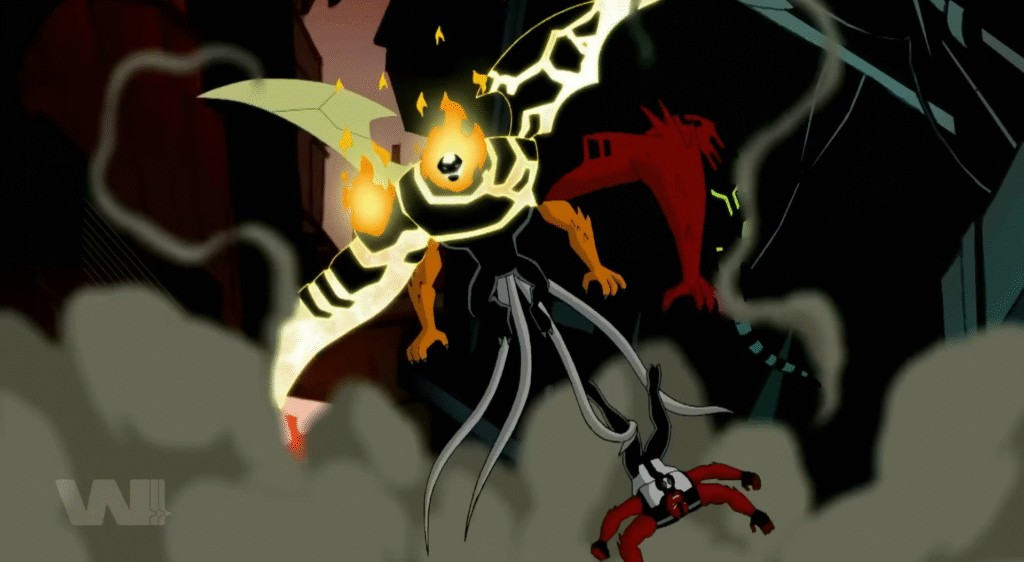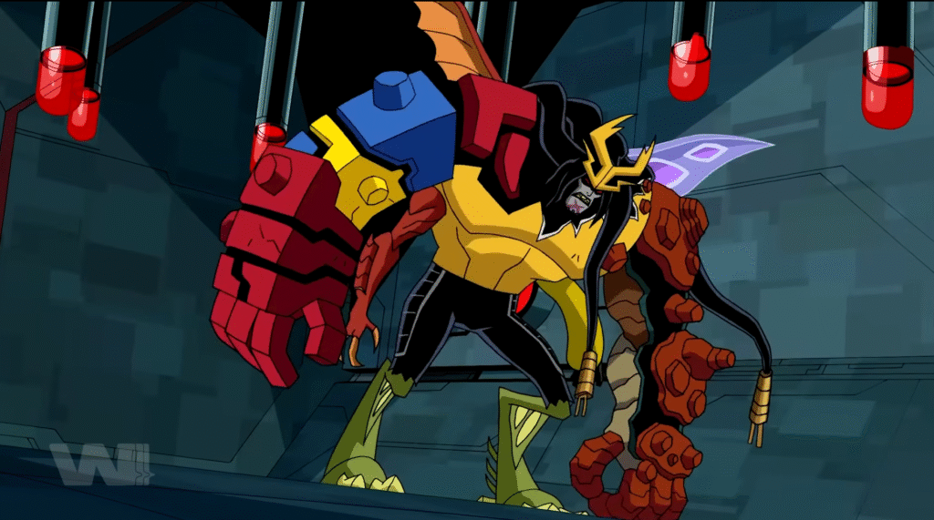 Kết quả: một quái vật cao lớn, cơ thể đỏ rực, sáu tay, cánh của Stinkfly, đuôi của XLR8, da của Diamondhead và cả chi tiết kỳ dị như hàm răng Ripjaws hay mắt của Grey Matter.