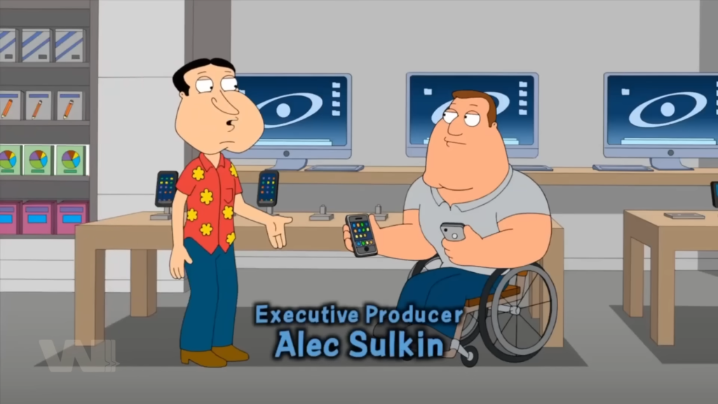 Apple, đối thủ của Samsung, cũng không thoát khỏi số phận này. Family Guy thường dùng Apple và iPhone như biểu tượng của sự ám ảnh công nghệ và tâm lý chạy theo xu hướng.