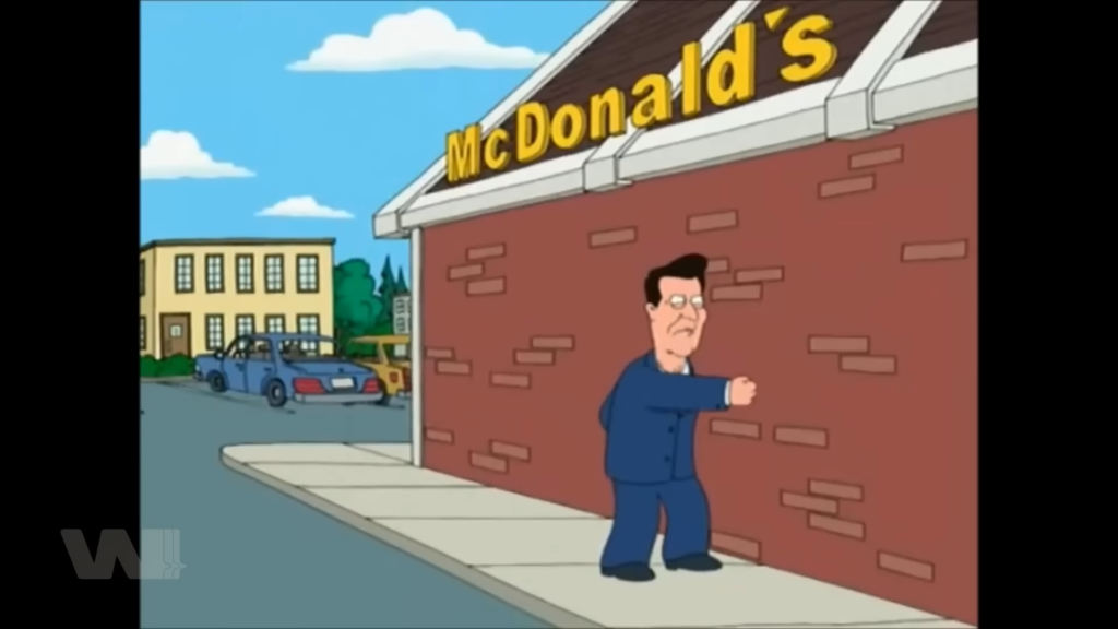 Family Guy không công kích McDonald’s bằng chất lượng đồ ăn, mà nhắm thẳng vào hình ảnh tuổi thơ quen thuộc.