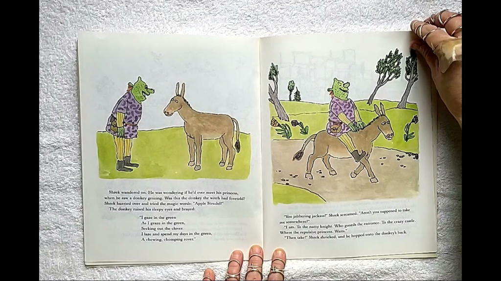 Đến đoạn này thì mình phải nói thật: Shrek bản truyện giống như một người cực kỳ yêu bản thân… theo kiểu đáng sợ. Nhưng đáng sợ một cách buồn cười. Vì nó làm đảo ngược tất cả thứ mà cổ tích dạy: người tốt phải đẹp, người xấu phải xấu và phải bị trừng phạt. Ở đây, người xấu tự hào vì mình xấu. Và câu chuyện không hề có ý định bắt Shrek trở nên dễ thương hơn để khán giả tha thứ.