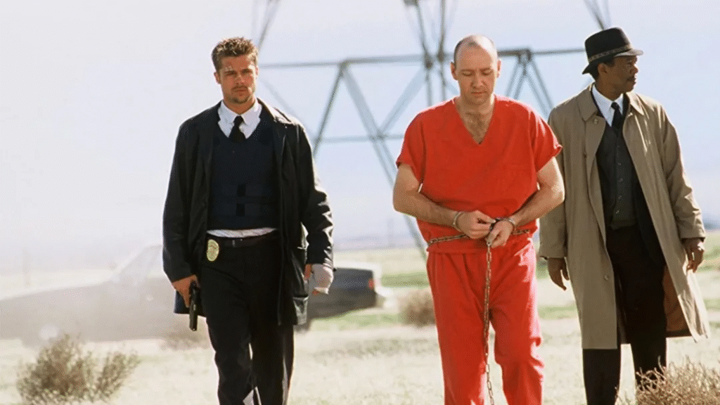The Usual Suspects (1995) là bậc thầy trong nghệ thuật kể chuyện ngược. Verbal Kint, tên tội phạm què quặt, kể cho cảnh sát nghe về vụ thảm sát và ông trùm huyền thoại Keyser Söze.